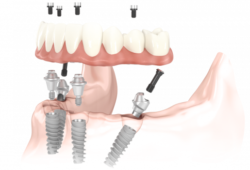 Full arch dental implants provide patients with brand new teeth by utilizing a permanent, titanium-reinforced bridge that can be secured with four to six dental implants. This allows us the flexibility to strategically place the implants in the areas in which the bone is most dense, reducing our need for bone grafting and other supporting treatments. Please keep in mind that we can help people in nearly any situation because of our team approach to Full Mouth Implant Cases.